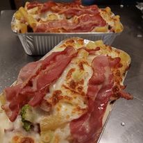 LA KATTY: lardons, jambon, poireaux, brocolis, crème, parmesan, bacon gratinée 16€